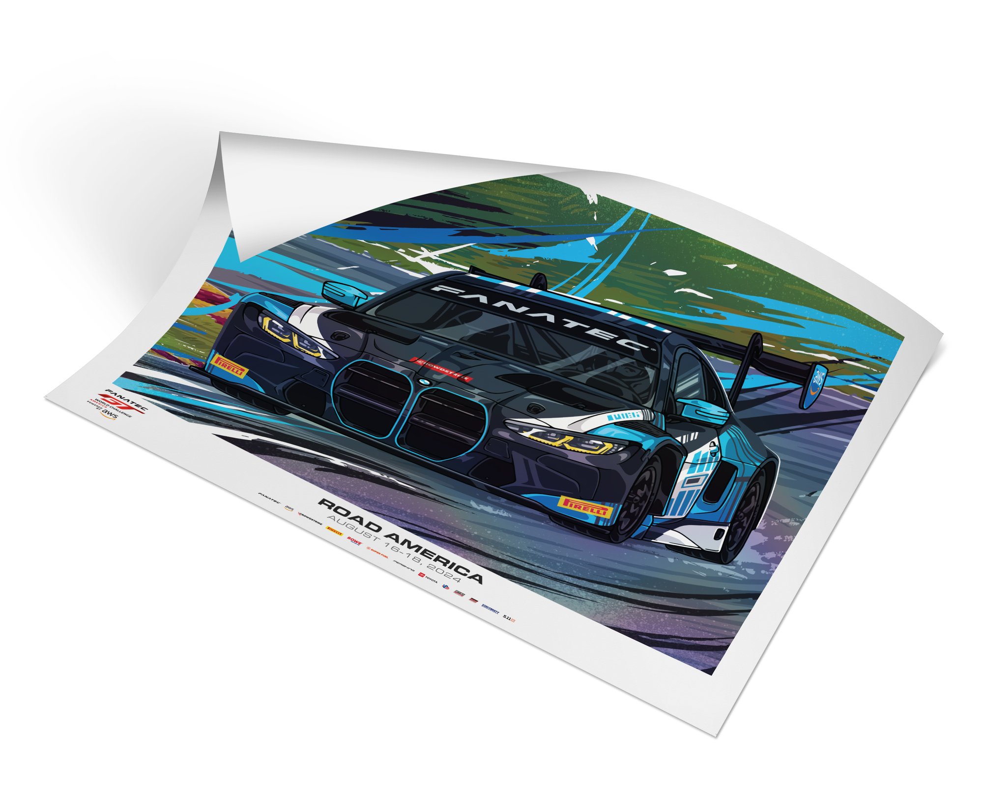 Holographic special edition event poster from the GT World Challenge America race at Road America. Printed on archival grade paper stock with a holographic foil process. Limited edition of 5 pieces. Once they're gone, they're gone.